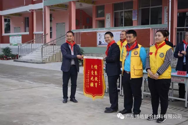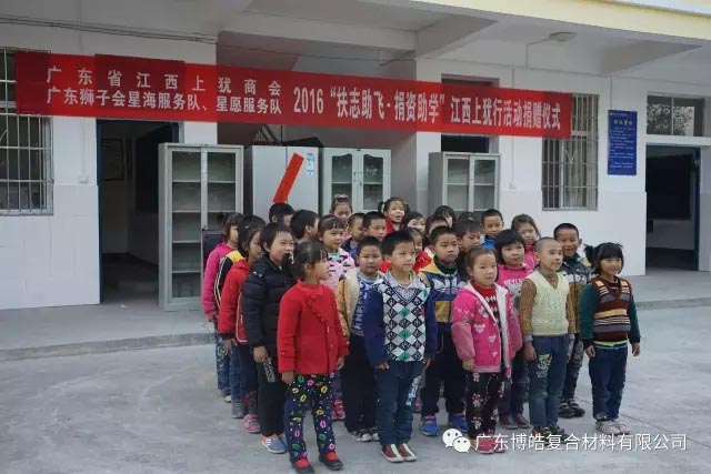 捐贈儀式上,廣東江西上猶商會會長、廣東博皓復(fù)合材料有限公司董事長賴厚平先生向陡水中心小學(xué)、平富中心校和營前鎮(zhèn)石溪小學(xué)等學(xué)校贈送了課桌、學(xué)習(xí)用品、電腦設(shè)備等教育教學(xué)物資及助學(xué)金,在講話中,賴厚平先生勉勵同學(xué)們勤奮學(xué)習(xí)、自強(qiáng)不息,把暫時的艱苦作為成長生活中的磨煉和精神財富的積累,把感激之情化為成才之志,發(fā)奮之源,用優(yōu)異的成績回報社會。
